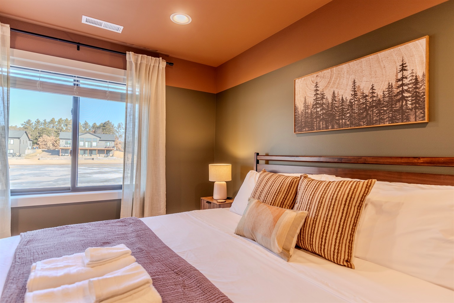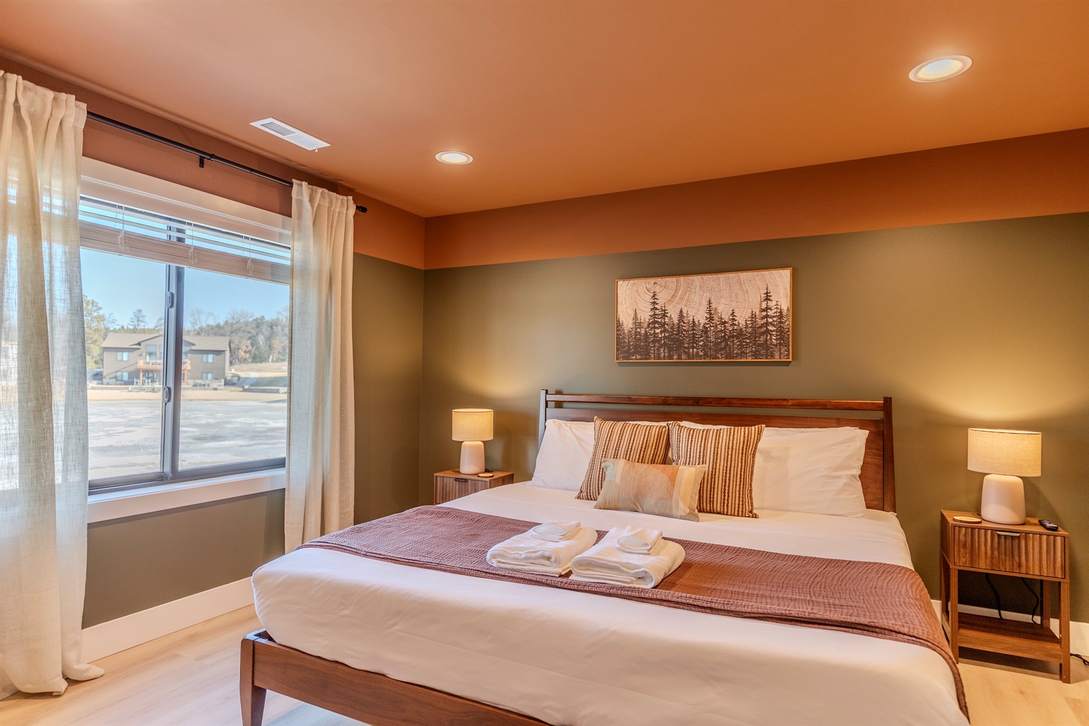 - Brown/Green lakeside bedroom with King bed