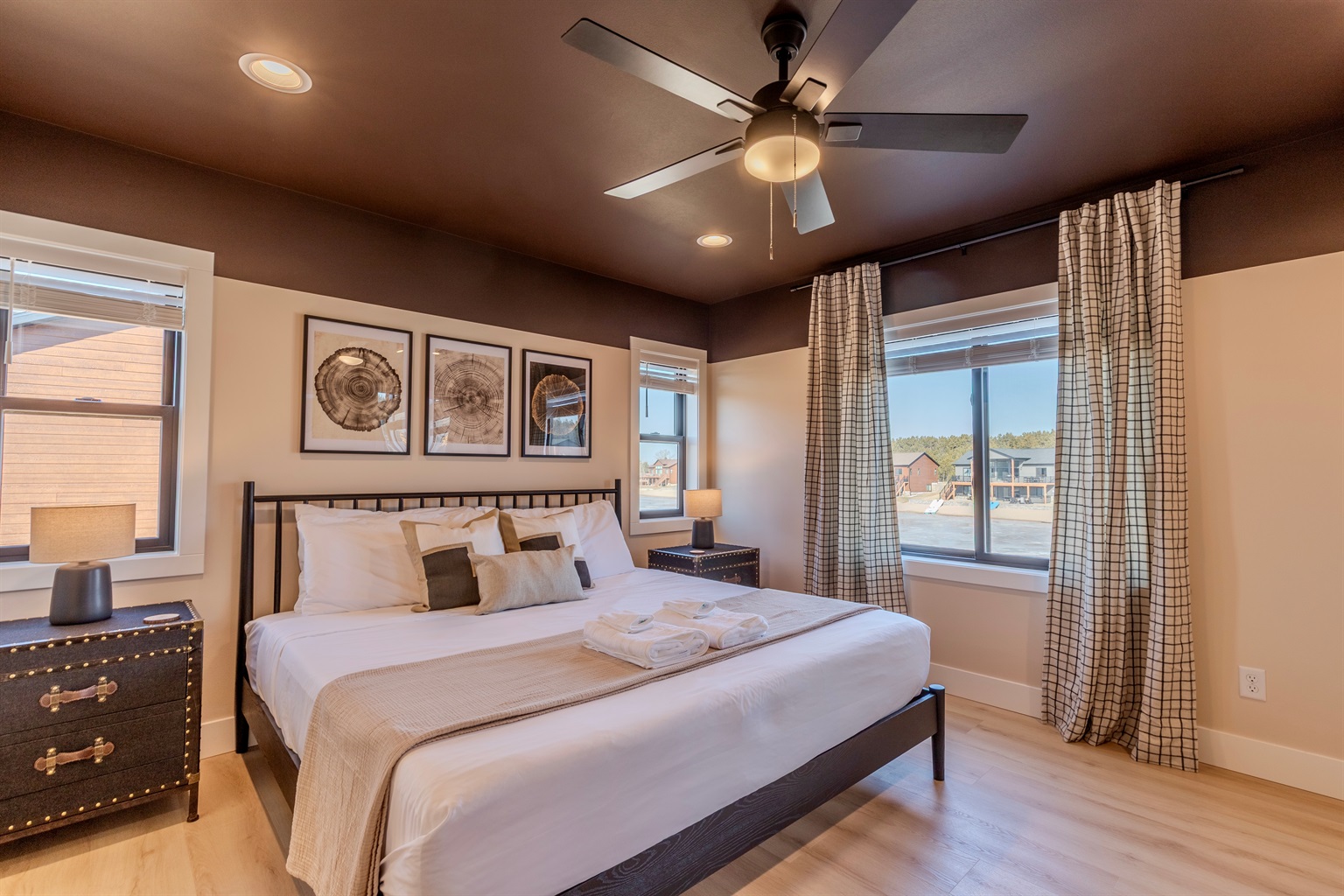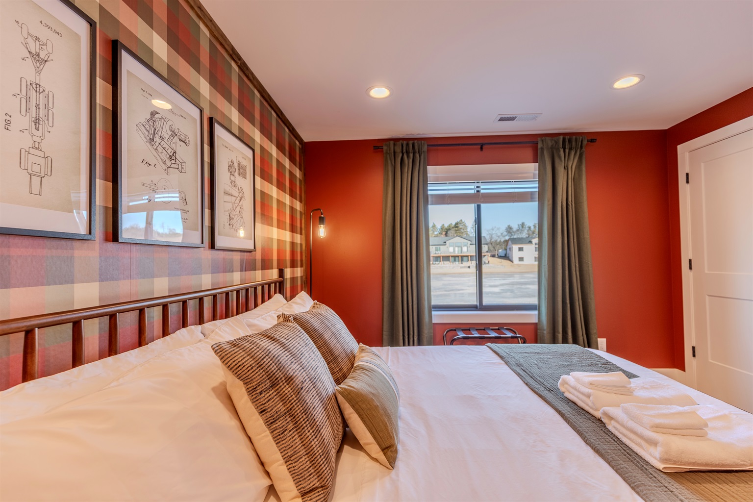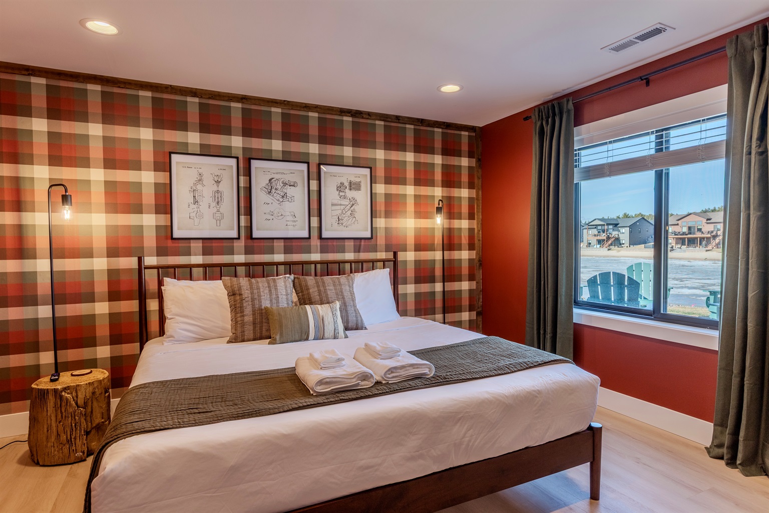 - Plaid lakeside bedroom with King bed